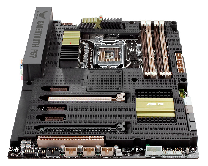 ASUS P67 Sabertooth. ASUS tiene con este modelo una de las placas P67 más interesantes del mercado. Una placa bien equipada con capacidad para los montajes más intensivos y con un precio realmente atractivo. Tiene prestaciones novedosas como su polémica “Thermal Armor” que da a esta placa esa imagen tan característica y que es sin duda un reclamo estético más que una prestación que realmente se pueda cuantificar como una mejora fundamental en la refrigeración del sistema.