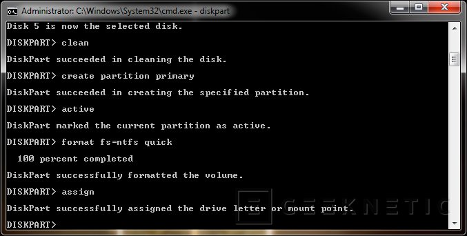 En estas capturas veis perfectamente el proceso de comandos dentro de diskpart para