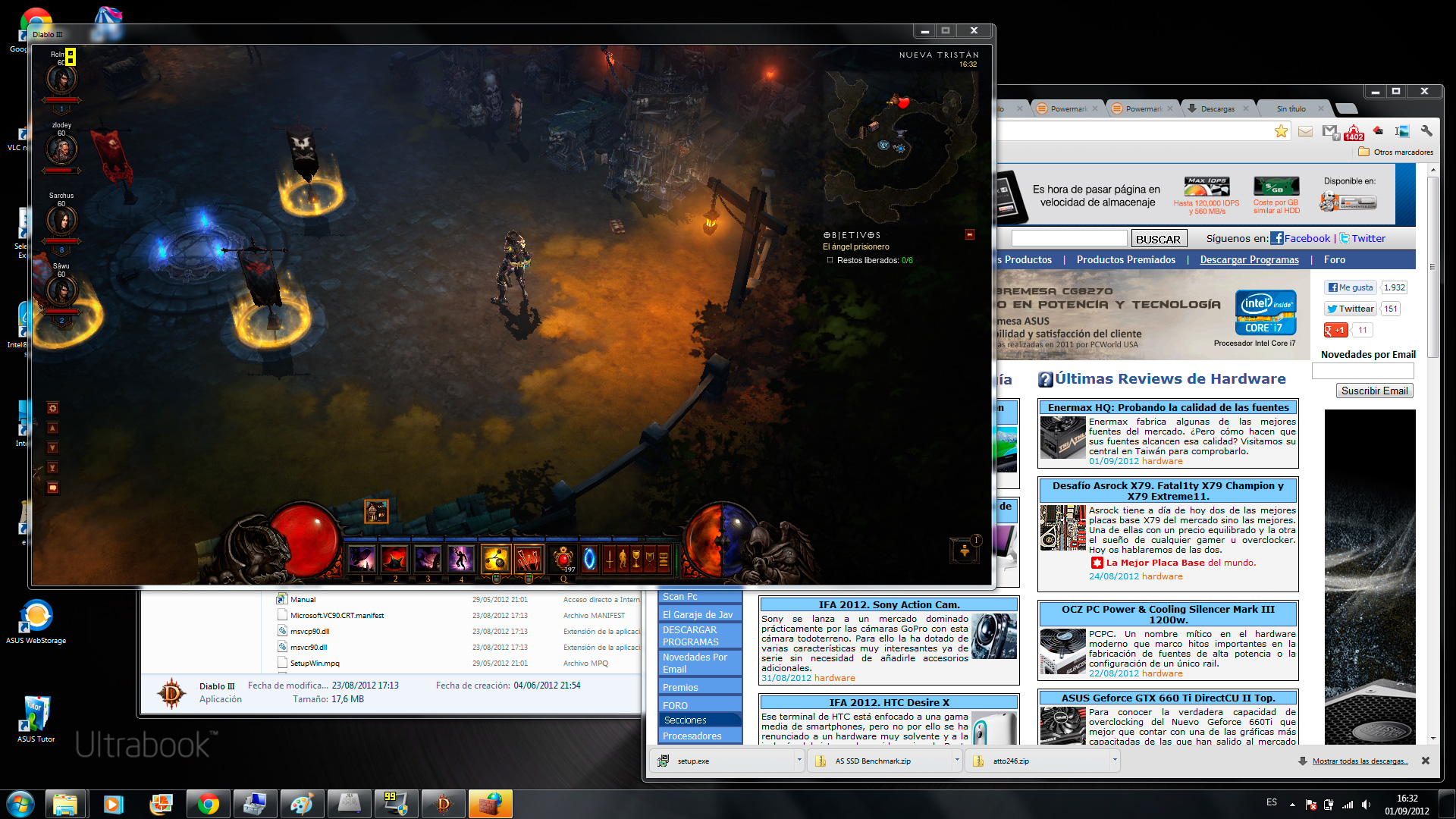 La resolución de esta pantalla es sorprendente. Diablo 3 corriendo  a 1280x800 puntos y nos queda espacio de trabajo para dar y regalar.