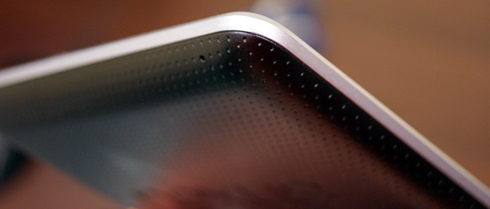 Detalle de un perfil de la Nexus 7. Podemos ver tambien el microfono integrado.