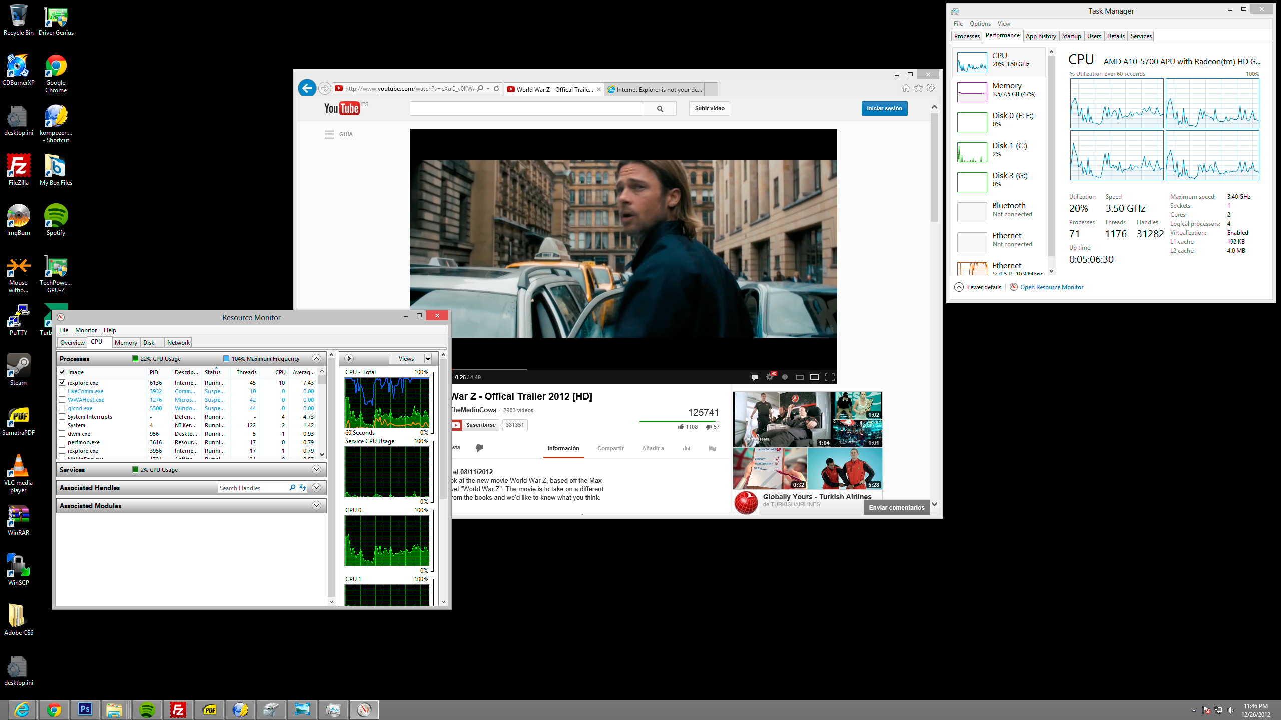 Con Internet Explorer 10 el consumo de CPU con Flash es de tan solo 6-7%.