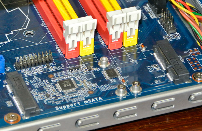 De los seis puertos SATA 6gbps que soporta este chipset Shuttle ha integrado todos ellos. Cuatro en forma de conectores SATA tradicionales, internos, y otros dos repartidos entre un conector mSATA para discos SSD (cache o almacenamiento tradicional) y un conector eSATA para almacenamiento externo.