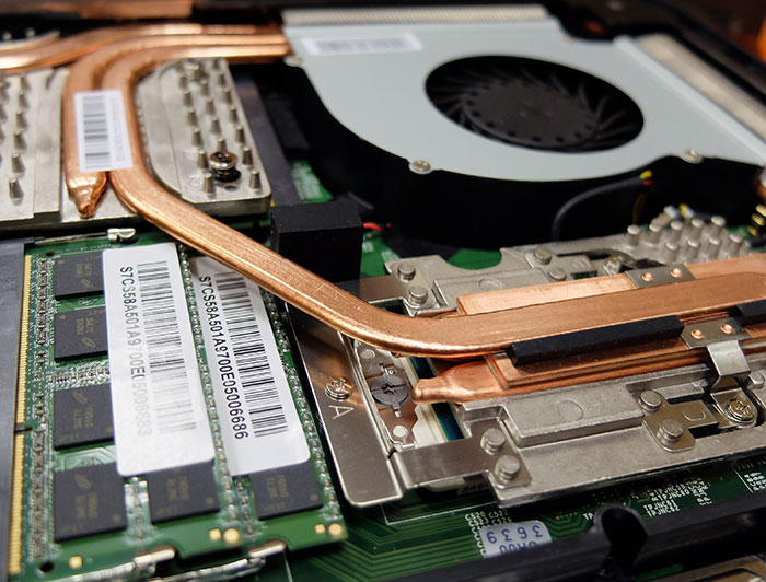 Detalle del corazón del GT70 2PE.Digo esto porque su gran prestación, el corazón gaming de este modelo, es la espectacular Geforce GTX 880M de Nvidia. Esta grafica tiene 1536 motores de shaders, con frecuencias de trabajo por encima de los 950MHz. Puede montar configuraciones de memoria de cuatro u ocho gigabytes. El modelo integrado en el MSI GT70 2PE es la variante de 8GB. La memoria que usa es de tipo GDDR5 con una configuración de bus de 256-Bit a 6gbps que produce un total de 160GB/s de ancho de banda. Es un chip grafico muy potente que acerca el rendimiento de una Geforce GTX 770 a un entorno de portátil.