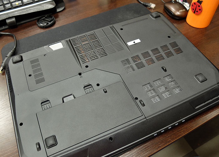 Los bajos del GT70 2PE. LA bateria de 9 celdas parece ridícula en el enorme cuerpo de este portátil. MSI ha maximizado la entrada de aire con un fondo lleno de rejillas.MSI también ha incorporado un potente sistema de almacenamiento combinado de discos SSD en formato mSATA con discos de almacenamiento mecánico para tener lo mejor de los dos mundos. Luego detallaremos este montaje con pruebas de rendimiento. El MSI GT70 2PE tiene una capacidad de hasta 32GB de memoria RAM DDR3 de alta velocidad pero en formato, como es lógico, de tipo SODIMM. Nuestra muestra monta 32GB de RAM pero la configuración comercial viene de serie con 16GB. En cualquiera de los casos me parece cantidad suficiente para un desempeño combinado excepcional. MSI ha incorporado la tecnología Killer Doubleshot tanto para la tarjeta de red Ethernet, de tipo gigabit, como en la tarjeta Wireless de tipo N con doble banda. Se echa de menos la tecnología AC que para mí sería mucho mejor que el software de priorización de paquetes que todos sabemos que realmente no hace nada importante por nuestro ping. Al menos integra también Bluetooth 4.0 en la misma solución así que tendremos una configuración variada aunque no perfecta como podríamos esperar de un portátil como este. En cualquier caso, como veis en las velocidades de tranferencias obtenidas, casi me tengo que tragar mis palabras con velocidades de mas de 20MB/s sobre Wifi a 5GHz.