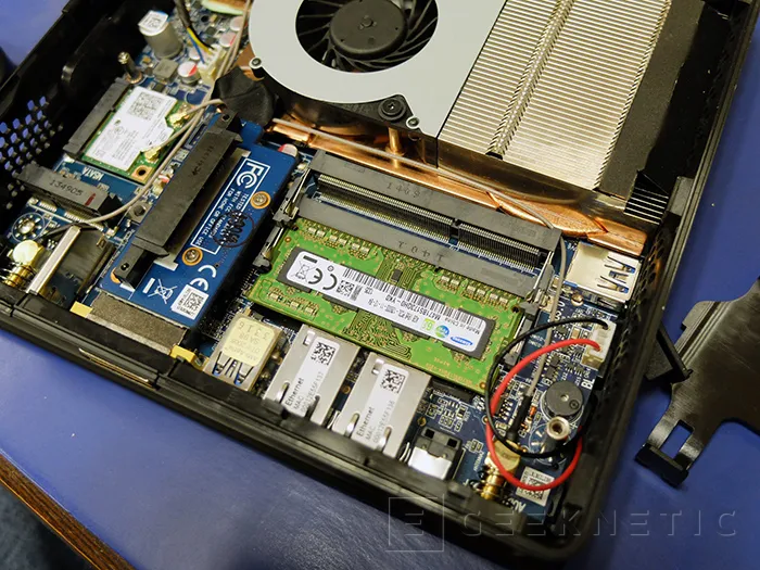 Debajo de este conjunto de disipación, muy parecido al que encontramos en muchos portátiles, está el procesador, la gráfica dedicada y el chipset.