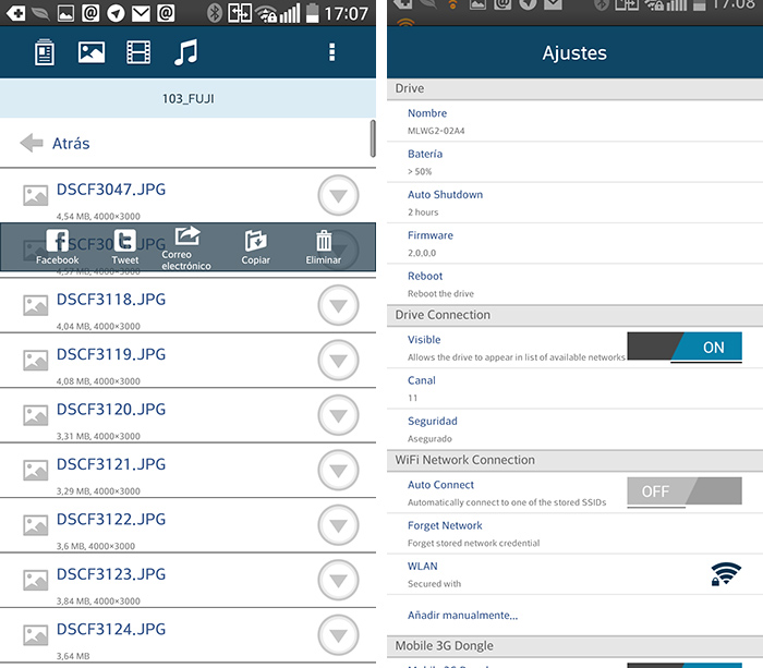 Podemos acceder a los datos a través de Web, SMB y también mediante Apps para iOS y Android. La conectividad inalámbrica es de tipo Wifi-N (hasta 150mbps) pero limitado a frecuencias de 2.4GHz. Esta es su principal función, permitir compartir nuestro almacenamiento económico con cualquier dispositivo existente de forma completamente gratuita y sin las limitaciones típicas que nos encontramos en ambas plataformas.