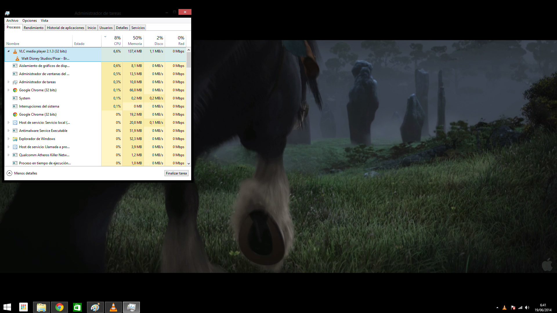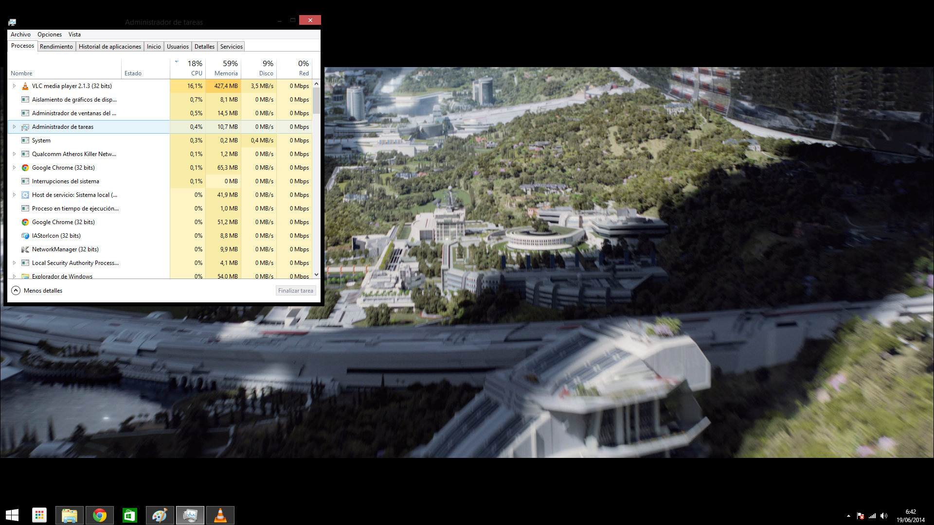 Consumo del 6% reproduciendo vídeo 1080p con VLC.