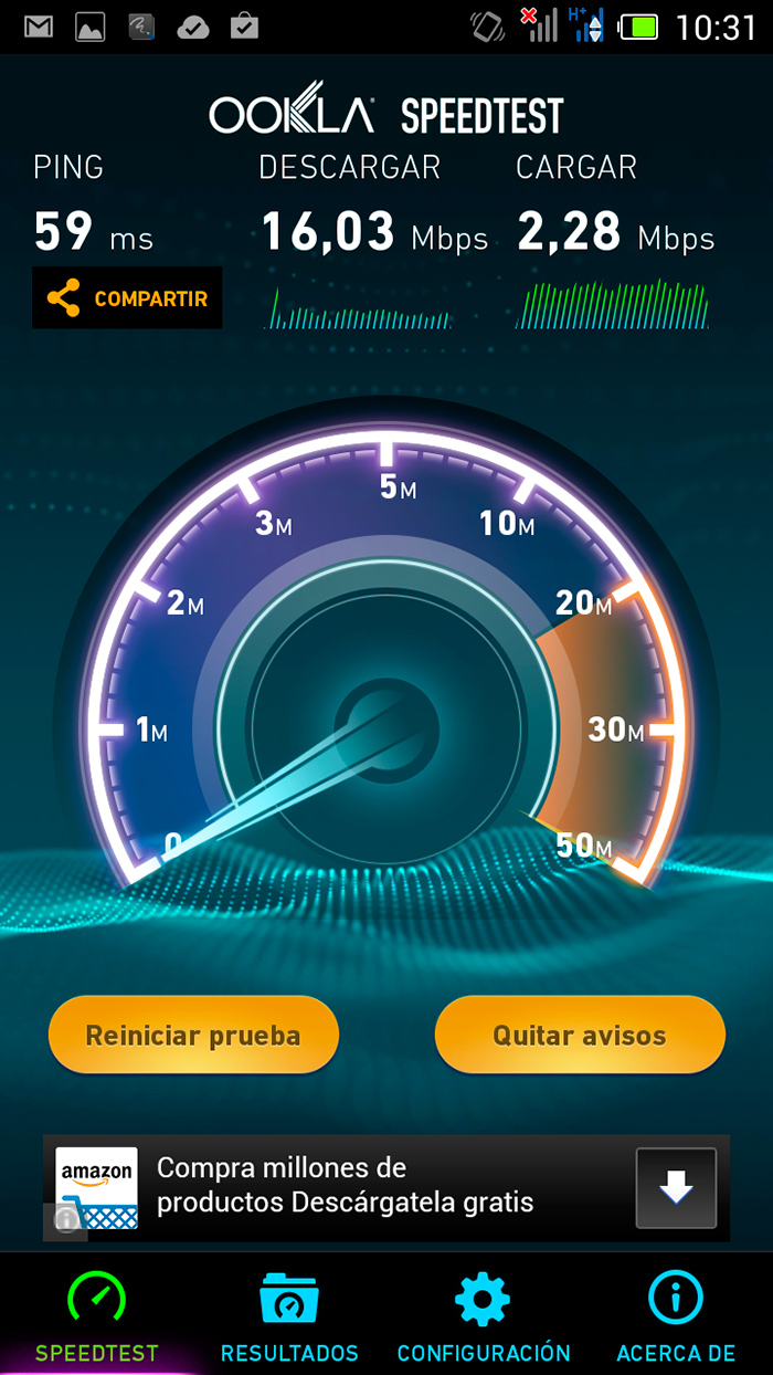 Nuestras pruebas 3G no fueron mal del todo. 16mbps de bajada.
