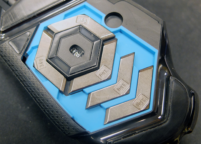 Contaremos con 11 botones programables, con funciones de programación de macros. También con una rueda con dos modos de uso, libre o por “clic”, así como la posibilidad de ajustar el peso del ratón y no solo el peso sino también la distribución del mismo dentro del ratón. Seis pesos de 3.6gr, para un máximo de 20gramos adicionales al peso nominal del ratón.